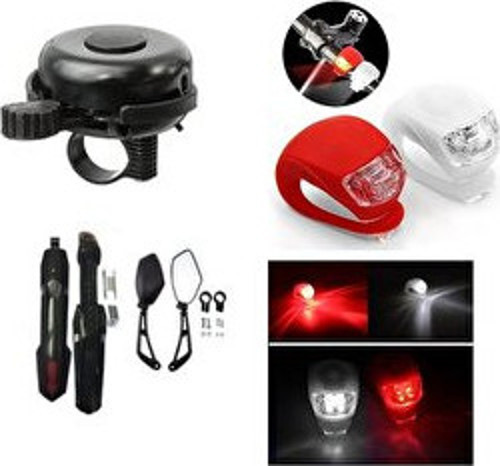 Bisiklet Aksesuar Seti 4 Lü Set ( silikon aydınlatma ön arka-çamurluk-zil-suluk kafes)