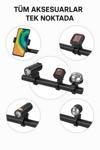 Telefon tutucu, far, zil, kilometre sayacı veya aksiyon kamerası gibi birden fazla ekipmanı tek noktada düzenli biçimde monte etmenizi sağlar.