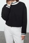 Bisiklet Yaka Düşük Kol Crop Rahat Kalıp Triko Yakalı İçi Polarlı Kalın Örme Sweatshirt