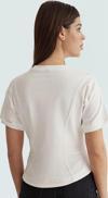 Örme kumaş yapısıyla vücudunuzu sararak mükemmel bir uyum sağlar. Şık ve zarif tasarımı, günlük hayatta rahatlıkla kombinlenebilir. Bisiklet yakası, kısa kolları ve fitted kalıbı ile modern ve stil sahibi görünmenize yardımcı olur. Rahat ve nefes alabilen yapısıyla tüm gün konfor sunar. Ekru rengi ile her türlü alt giysiyle mükemmel bir uyum sağlar.