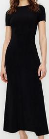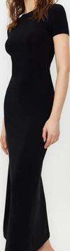 Ersefa Bisiklet Yaka Gri Kısa Kol Bodycone Vücuda Oturan Bisiklet Yaka Esnek Örme Maxi Kalem Elbise