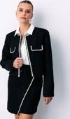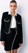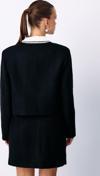 Bisiklet yaka, düz uzun kol, kapaklı süs cep, iç astarlı, şerit detaylı kısa ceket.