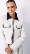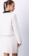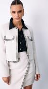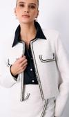 Bisiklet yaka, düz uzun kol, kapaklı süs cep, iç astarlı, şerit detaylı kısa ceket.