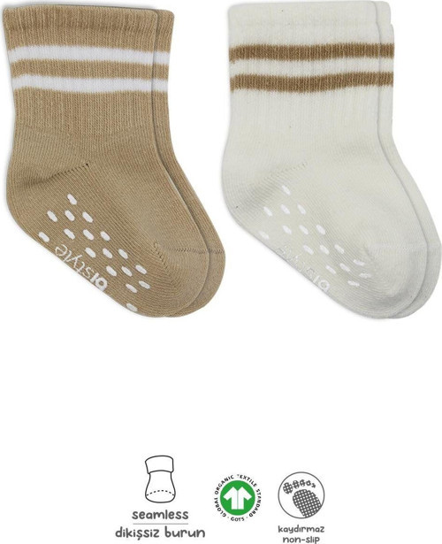 Paket İçeriği: Bistil Bistyle Organik Dikişsiz 2li Çemberli Kaymaz Penye Soket Bebek Çorap