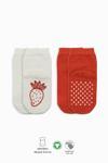 Bistyle Meyve Figürlü Kaymaz Soket Çorap 2'Li BS10105 Kırmızı Ekru