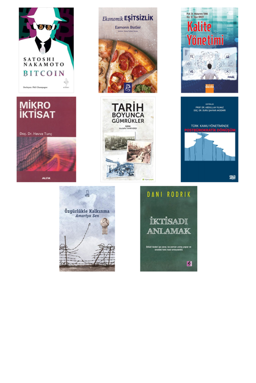 Bitcoin - Ekonomik Eşitsizlik - Kalite Yönetimi - Mikro İktisat - Tarih Boyunca Gümrükler - Türk Kamu Yönetiminde Postbürokratik Dönüşüm - Özgürlükle Kalkınma - İktisadı Anlamak