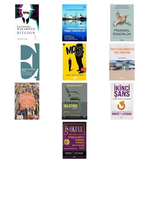 Bitcoin - Deniz Taşımacılığının Temel Unsurları - Finansal Özgürlük - Makroekonomik Teori - Moks - Seyahat İşletmelerinde Tur Planlaması ve Tur Yönetimi - Uluslararası Ekonomi Politiğe Giriş - Çağdaş İşletme - İkinci Şans - İş Okulu - Başkalarına Yardım Etmeyi Sevenler İçin