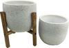 Bitki Tasarımı Beyaz Granit Toprak Saksı İkili Set (4 ayaklı-ayaksız) 19 cm