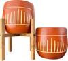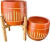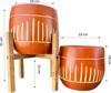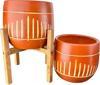 Bitki Tasarımı Dik Çizgi Desenli Toprak Saksı Saksılık Salon Çiçeklik İkili Set Ayaksız - 4 Ayaklı- 19 CM