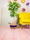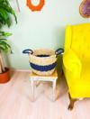 Bitki Tasarımı Düzenleyici Kulplu Siyah Şeritli Doğal Örgü Sepet Büyük