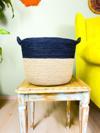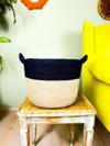 Bitki Tasarımı Düzenleyici Kulplu Üstü Siyah Şeritli Doğal Örgü Sepet Orta