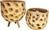 Bitki Tasarımı Ev Dekorasyon Aksesuar Naturel Desenli Toprak Saksı Saksılık Salon Çiçeklik İkili Set Ayaksız - 3 Ayaklı