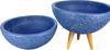Bitki Tasarımı Ev Dekorasyon Lacivert Granit Aranjman Sunumluk Toprak Saksı Ayaksız Ve 3 Ayaklı İkili Set 20 Cm Çap