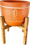 Bitki Tasarımı Doğal Nakış Desen Terrakota Toprak Saksı 4 Ayaklı
