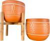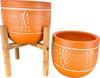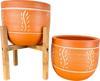 Bitki Tasarımı Doğal Nakış Desen Terrakota Toprak Saksı İkili Set 4 Ayaklı - Ayaksız