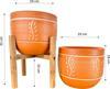 Bitki Tasarımı Ev Dekorasyon Nakış Desenli Toprak Saksı Saksılık Salon Çiçeklik İkili Set Ayaksız - 4 Ayaklı- 19 CM