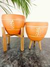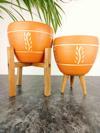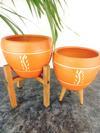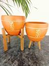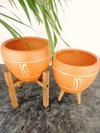 Bitki Tasarımı Nakış Desenli Terrakota Toprak Saksı Saksılık Salon Çiçeklik İkili Set 3 Ayaklı- 4 Ayaklı- 15 Cm