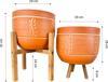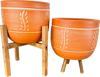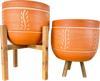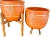 Bitki Tasarımı Doğal Nakış Desen Terrakota Toprak Saksı İkili Set 4 Ayaklı - 3 Ayaklı