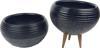 Siyah Granit Küp Aranjman Saksı İkili Set (ayaksız-3 ayaklı)
