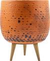 Bitki Tasarımı Dik Çizgi Desenli Toprak Saksı Saksılık Salon Çiçeklik İkili Set 3 Ayaklı- 4 Ayaklı- 19 CM