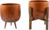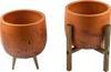 Bitki Tasarımı Siyah Nokta Desenli Toprak Saksı Saksılık Salon Çiçeklik İkili Set 3 Ayaklı- 4 Ayaklı- 19 CM