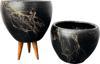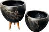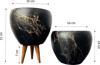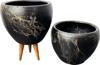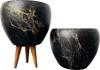 Bitki Tasarımı Siyah Üzeri Gold Mermer Efektli Toprak Saksı İkili Set (3 ayaklı-ayaksız) 16 cm