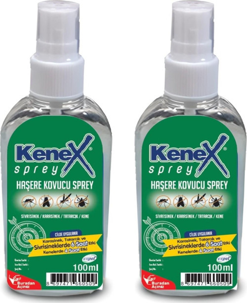 Gerekli tüm testleri tamamlanıp kalitesi kanıtlanmış yerli üretim ilk kovucu sprey kenex ile sinek, tatarcık ve kene sorunlarını kökten ortadan kaldırmaya hazır mısınız ? 8 Saat etkili güçlü koruma