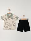 Bizizo Bizio Yaprak baskılı Polo Yaka 2-5 Yaş Takım - Bej2-3 Yaş