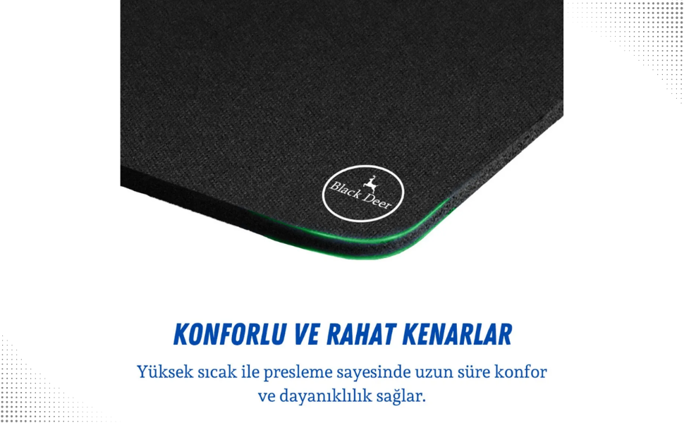 - Dayanıklı Dikişsiz Kenarlar: Bu mouse pad, uzun süreli kullanımda aşınmayı, deformasyonu ve yıpranmayı engelleyen güçlü kenarlara sahiptir. Dikişsiz kenarlar bilekleriniz ve elleriniz için pürüzsüz bir yüzey sağlar. Yüksek sıcaklıklarda preslendiği için üst yüzeyin kalkma ihtimali yoktur.