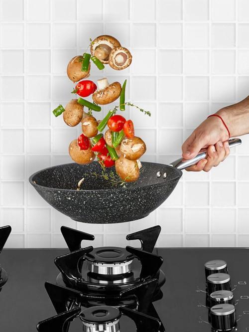 Dayanıklı granit malzemesi uzun ömürlü kullanım vaat ederken, 28 cm çapındaki geniş yüzeyi geniş pişirme alanları sunar.