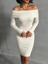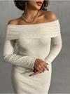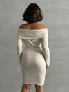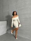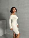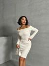 - Zarif tasarımıyla dikkat çeken bu midi boy kaşkorse elbise, omzu açık siluetiyle feminen bir duruş sergiler.