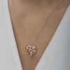 Kalp simgesi daima koşulsuz sevginin ve aşkın sembolü olmuştur. Dini öğretilerde ise kalbin gücü sınırsızdır. Çünkü kalp Yaradanın evi, bizim ise evrene açılan gerçeklik kapımızdır. Bu şık gümüş bombeli kalp kadın kolye; doğum günü hediyesi, sevgililer günü hediyesi veya annelere hediye olarak özel günlerde tercih edilebilecek mükemmel bir seçenektir. Gümüş kalp kadın kolye 925 ayar gümüşten imal edilmiştir. Bu kolye üzerinde rose kaplama yapılmıştır. Rose kaplama yapılan gümüş kadın kolye modelleri parlaklığını uzun süre muhafaza eder. Üzerinde bulunan taşlar zirkondur. Tüm gümüş kadın kolye modellerimizde olduğu gibi gümüş bombeli kalp kadın kolye modeli de el emeği ile üretilmiştir. Gümüş ve değerli taşlar nedeniyle belirtilen ortalama ürün ağırlığında ± %10 sapma olabilmektedir.