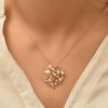 Ağaç kolye; yeni bir yaşamı, hayatın enerjisini ve yepyeni fırsatları temsil eder. Kökleri yerdeyken, göklere yükselen dalları ile cennetle yeryüzünü birleştiren bir köprü olmuştur. Yeni bir yaşamın büyümesini, soyunu devam ettirmesini ve ailenin simgesi olarak yorumlanıyor. Ve tam da bu nedenle genellikle aile olarak görülen ya da “ailem olmanı istiyorum” dileğiyle çok sevilen insanlara hediye ediliyor. Siz de sevdiklerinize ve aileniz olmasını istediğiniz değer verdiğiniz kişilere bu kolyeyi hediye edebilir, onlara vermiş olduğunuz değeri gösterebilirsiniz. Gümüş hayat ağacı bayan kolye modeli 925 ayar gümüşten imal edilmiştir. Gümüş üzerine rose altın kaplama yapılmıştır. Rose altın kaplama yapılan gümüş bayan kolye modelleri parlaklığını uzun süre muhafaza eder ve oksitlenmesi gecikir. Kolye üzerinde bulunan taşlar inci ve zirkondur. Gümüş olan zincir boyu ortalama 45 cm'dir. Tüm gümüş bayan kolye modellerinde olduğu gibi gümüş hayat ağacı bayan kolye modeli de el emeği ile üretilmiştir. Gümüş ve değerli taşlar nedeniyle belirtilen ortalama ürün ağırlığında ± %10 sapma olabilmektedir.