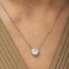 Kalp simgesi daima koşulsuz sevginin ve aşkın sembolü olmuştur. Dini öğretilerde ise kalbin gücü sınırsızdır. Çünkü kalp Yaratanın evi, bizim ise evrene açılan gerçeklik kapımızdır. Bu şık gümüş kalp kolye; doğum günü hediyesi, sevgililer günü hediyesi veya annelere hediye olarak özel günlerde tercih edilebilecek mükemmel bir seçenektir. Gümüş kalp bayan kolye 925 ayar gümüşten imal edilmiştir. Bu kolye üzerinde rodyum kaplama yapılmıştır. Rodyum kaplama yapılan gümüş kolye modelleri parlaklığını uzun süre muhafaza eder. Üzerinde bulunan taş zirkondur. Tüm gümüş kolye modellerimizde olduğu gibi gümüş kalp kolye modeli de el emeği ile üretilmiştir. Gümüş ve değerli taşlar nedeniyle belirtilen ortalama ürün ağırlığında ± %10 sapma olabilmektedir.