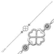 Gümüş Kalpli Yonca Bayan Bileklik