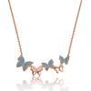 Özgürlüğü masumiyeti ve saflığı simgeleyen kelebekler, tertemiz sevginin ve aşkın ifadesidir. Bahar kelebekleri kolye anlam itibari ile aşkın küçük bir kıvılcım ile başladığı daha sonra büyük bir sabır ile büyüdüğü ve en sonunda ilan-ı aşkı ifade eder. Sizin olduğu kadar sevdiklerinizin de keyifle takacağı gümüş kelebek kolye en güzel hediyelerden biri olacaktır. Gümüş üzerine rose altın kaplama yapılmıştır. Rose altın kaplama yapılan gümüş kolye modelleri parlaklığını uzun süre muhafaza eder ve gümüşe pembe rengi verir. Üzerinde bulunan taşlar zirkondur. Gümüş zincir uzunluğu ortalama 45 cm’dir. Tüm gümüş kolye modellerinde olduğu gibi gümüş kelebek kolye de el emeği ile üretilmiştir. Gümüş ve değerli taşlar nedeniyle belirtilen ortalama ürün ağırlığında ± %10 sapma olabilmektedir.