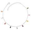 Kalbimizin ve ruhumuzun en eğlenceli tarafı olan rengarenk hayal dünyamızın yansıması özel tasarım renkli halhallar... Bu şık halhalı doğum günü hediyesi, sevgililer günü hediyesi veya annelere hediye olarak özel günlerde tercih edilebilecek mükemmel bir seçenektir. Renkli damla halhal modeli 925 ayar gümüşten üretilmiştir. Gümüş üzerine rodyum kaplama yapılmıştır. Rodyum kaplama yapılan damla kadın halhal modelleri parlaklığını uzun süre muhafaza eder ve oksitlenmeyi geciktirir. Halhal üzerindeki taşlar farklı renklerde olabilmektedir. Tüm gümüş halhal modellerinde olduğu gibi gümüş renkli damla kadın halhal modeli de el emeği ile üretilmiştir. Gümüş ve değerli taşlar nedeniyle belirtilen ortalama ürün ağırlığında ± %10 sapma olabilmektedir.