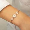 Papatya çiçeği, temiz sevgi anlamını ifade eder. En büyük özelliklerinden biri her sapında bir tane olmasıdır. Bu güzellik tasarlanarak ortaya çıkan bu ışıl ışıl bileklik, zirkon taşlarla süslenmiştir... Bu şık bileklik; doğum günü hediyesi, sevgililer günü hediyesi veya annelere hediye olarak özel günlerde tercih edilebilecek mükemmel bir seçenektir. Gümüş üçlü papatya bayan bileklik 925 ayar gümüşten imal edilmiştir. Bu bileklik üzerinde rose altına kaplama yapılmıştır. Rose altın kaplama yapılan ürünler parlaklığını uzun süre muhafaza eder. Üzerinde bulunan taşlar zirkon'dur. Tüm gümüş bayan bileklik modellerinde olduğu gibi gümüş üçlü papatya bayan bileklik modeli de el emeği ile üretilmiştir. Bilekliğin uzunluğu 19 cm'dir. Gümüş ve değerli taşlar nedeniyle belirtilen ortalama ürün ağırlığında ± %10 sapma olabilmektedir.