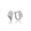 Yaprak desenli özel tasarım küpe modeli 925 ayar gümüşten imal edilmiştir. Küpe üzerine rodyum kaplama yapılmıştır. Rodyum kaplama yapılan gümüş küpe modelleri parlaklığını uzun süre muhafaza eder, oksitlenmesi gecikir. Küpe üzerinde bulunan taşlar zirkondur. Tüm küpe modellerimiz de olduğu gibi gümüş yaprak desenli küpe modeli de el emeği ile üretilmiştir. Gümüş ve değerli taşlar nedeniyle belirtilen ortalama ürün ağırlığında ± %10 sapma olabilmektedir.