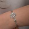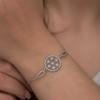 Yaşam çiçeği insan ve tüm canlıların yaradılışını geometrik bir şekilde anlatır. Sahip olduğu simgeler ile tek bir yaratıcının varlığına atıf yapar. Gerçekten de insanın ve tüm canlıların yaradılış düzeni yaşam çiçeğinin geometrik şekillerinde gizlidir. Dünyada “sessizliğin dili” ve “ışığın dili” olarak da bilinen yaşam çiçeğinin odak noktası, saf şeklinde ve orantısındadır. Yaşam çiçeği iç içe geçen 20 adet çemberden oluşmaktadır ve bu çemberler tüm evrenin sırrını içerisinde saklamaktadır. Yaşam çiçeğinin içerisinde bulunan ilk 7 çember dünyanın 7 günde oluştuğunu simgelemektedir. Yaşam çiçeği kutsal geometrik şekiller ile bağdaştırılmaktadır ve semavi dinlerin hemen hemen hepsinde yaşam çiçeği kullanılmıştır. Yaşam çiçeği sembollü aksesuarlar kişilerin daha enerjik bir ruh haline sahip olmasını ve ruhun temizlenmesini sağlamaktadır. Her dönem sevilen bu modeli; doğum günü hediyesi, sevgililer günü hediyesi veya annelere hediye olarak özel günlerde tercih edebilirsiniz. Gümüş yaşam çiçeği bileklik, 925 ayar gümüşten imal edilmiştir. Gümüş üzerine rodyum kaplama yapılmıştır. Rodyum kaplama yapılan gümüş bayan bileklikler parlaklığını uzun süre muhafaza eder, oksitlenmesi gecikir. Üzerinde bulunan taşlar zirkondur. Tüm gümüş bayan bilekliklerinde olduğu gibi bu gümüş bayan bileklik modeli de tamamı el emeği ile üretilmiştir. Gümüş ve değerli taşlar nedeniyle belirtilen ortalama ürün ağırlığında ± %10 sapma olabilmektedir.