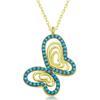 Gümüş Gold Turkuaz Taşlı Kelebek Kadın Kolye