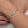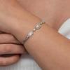 Üçlü baget taşlı kadın bileklik, şıklığı ve zarafeti bir araya getiren bir aksesuar türüdür.Bu bileklik, hem günlük kullanımda hem de özel günlerde rahatlıkla tercih edilebilecek bir aksesuardır. Farklı stillerle kombinlenebilir ve birçok kıyafetle uyum sağlar. Gümüş üzerine rodyum kaplama yapılmıştır. Rodyum kaplama yapılan kadın bileklik modelleri parlaklığını uzun süre muhafaza eder. Gümüş ve değerli taşlar nedeniyle belirtilen ortalama ürün ağırlığında ± %10 sapma olabilmektedir.