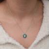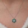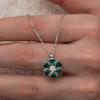 Gümüş Yeşil Kalpli Çiçek Kadın Kolye
