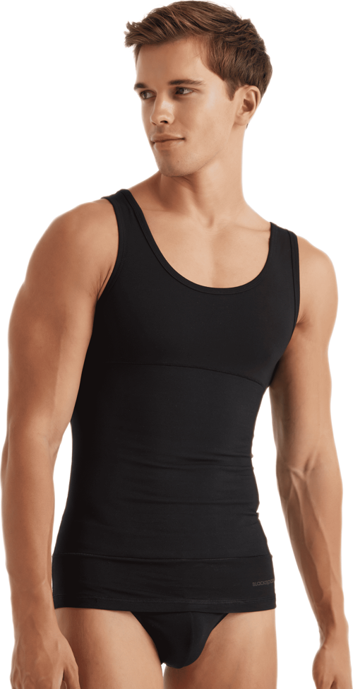- Kalın askılı U yaka, bel ve karın bölgesinde yüksek toplama özelliği olan erkek korse atlet.