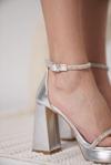 Etiler Collection'un zarif tasarımıyla dikkat çeken bu gümüş topuklu sandalet, şıklığı ve konforu bir arada sunar.
