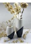 - İki adet siyah beyaz beton vazo seti, modern ve şık dekorasyonunuzu tamamlar.