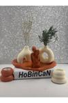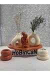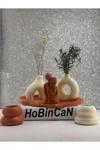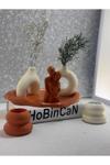 Blanj 2'Li Minimal Vazo Sarılmış Sevgili 2 'Li Tealight Mumluk Sunumluk Bulut Tabak Ozel Set Kiremit-Krem