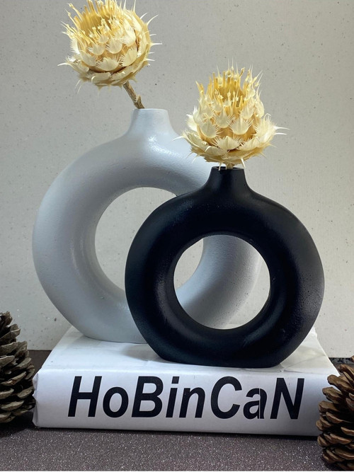 Bohem İkili Halka Vazo Acık Gri Siyah
