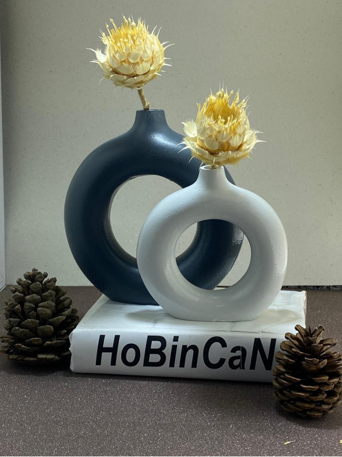 Blanj Bohem İkili Halka Vazo Andasit-Açık Gri