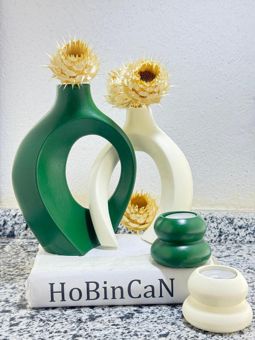 vazo ölçüleri buyuk vazo 22 cm kucuk vazo 16 cm dir toplam 4 parça olarak gonderim sağlanacaktır mum ve çiçekler dahil değildir